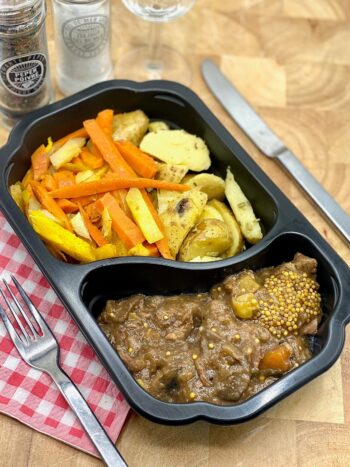 Vlaamse runderstoof met kloosterbier, gele bietjes & gebakken aardappel